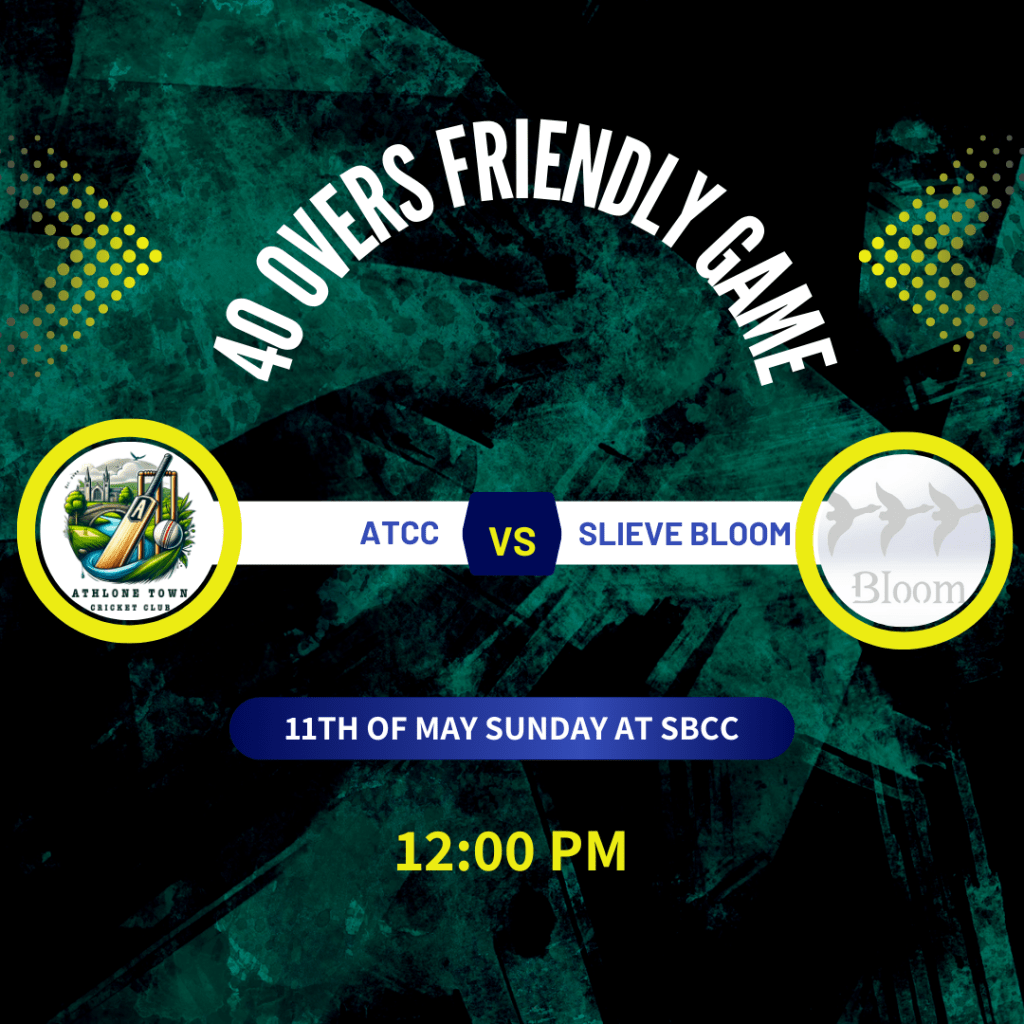 π₯ Get ready for an exciting clash as Athlone Town Cricket Club takes on Slieve Bloom Cricket Club in a thrilling 40-over Friendly Game! π